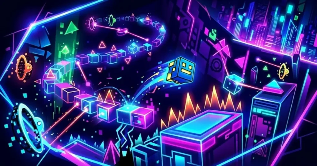 El timing en Geometry Dash no es como en otros juegos de ritmo donde hay una ventana de tolerancia amplia. Aquí el margen de error es de milisegundos — tocar un frame antes o un frame después de lo necesario puede significar la diferencia entre superar un obstáculo y chocar con él. Los jugadores experimentados hablan de “aprender el mapa a través de la memoria muscular”: después de decenas o cientos de intentos, el cuerpo sabe cuándo tocar sin necesidad de pensar conscientemente. Esa es la razón por la que el modo práctica con checkpoints es tan valioso — permite aislar y repetir los segmentos más exigentes hasta que el timing queda automatizado.