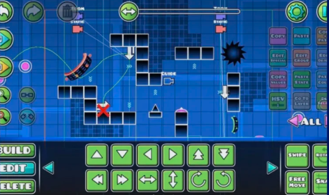 El editor de niveles de Geometry Dash 2.2 es uno de los más completos en juegos móviles. Dispones de más de 700 objetos, portales de gravedad, efectos de luz y partículas, triggers de activación por zona, y la posibilidad de importar música de Newgrounds o usar las canciones oficiales del juego. Los niveles creados se pueden publicar en los servidores de RobTop para que la comunidad los juegue y valore. Millones de niveles de usuario están disponibles, desde diseños artísticos hasta niveles de dificultad extrema.