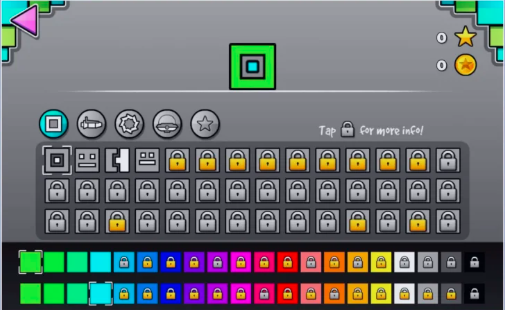 Geometry Dash ofrece un sistema de personalización amplio: cubos, naves, bolas, arañas, robots, ondas y más. Cada forma tiene decenas de variantes visuales con colores primarios y secundarios configurables. Cuanto más juegas y más estrellas, monedas y logros consigues, más opciones de personalización se desbloquean. Los iconos son puramente cosméticos — no afectan al gameplay — pero se convierten en señal de experiencia dentro de la comunidad.